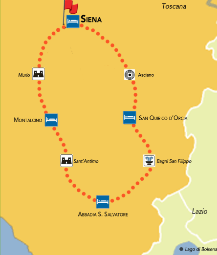 Die Etappen beinhalten Stopps an ikonischen Orten wie Pienza, San Quirico d'Orcia und Bagno Vignoni, wo Geschichte, Kultur und Natur harmonisch verschmelzen. Trekking im Val d'Orcia ist ideal für Wanderer aller Niveaus und eine erholsame Reise für Körper und Geist, mit der Möglichkeit, unterwegs toskanische Köstlichkeiten zu probieren.